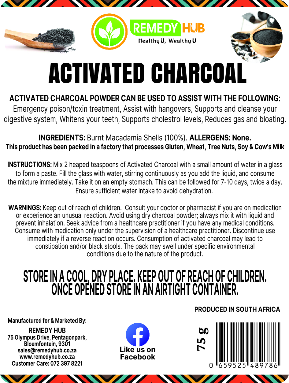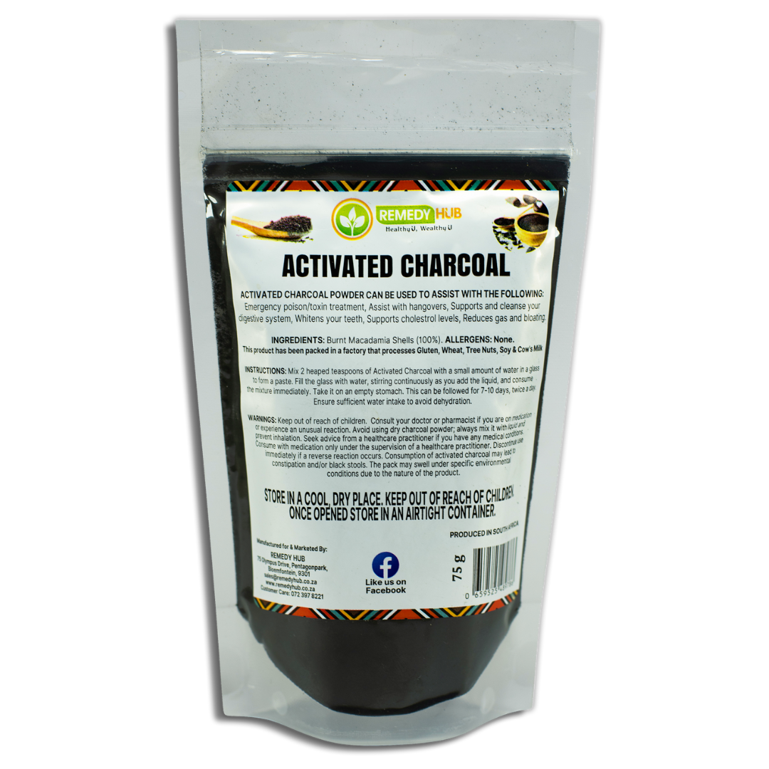 or experience an unusual reaction. Avoid using dry charcoal powder; always mix it with liquid and prevent inhalation. Seek advice from a healthcare practitioner if you have any medical conditions. Consume with medication only under the supervision of a healthcare practitioner. Discontinue use immediately if a reverse reaction occurs. Consumption of activated charcoal may lead to constipation and/or black stools. The pack may swell under specific environmental conditions due to the nature of the product.